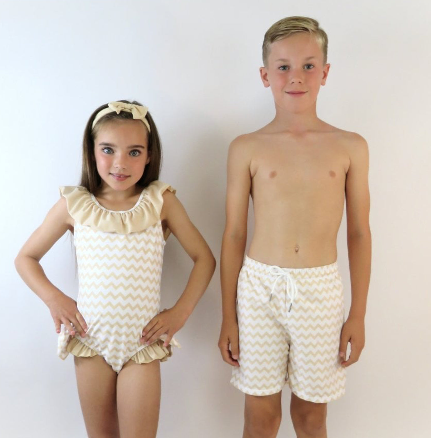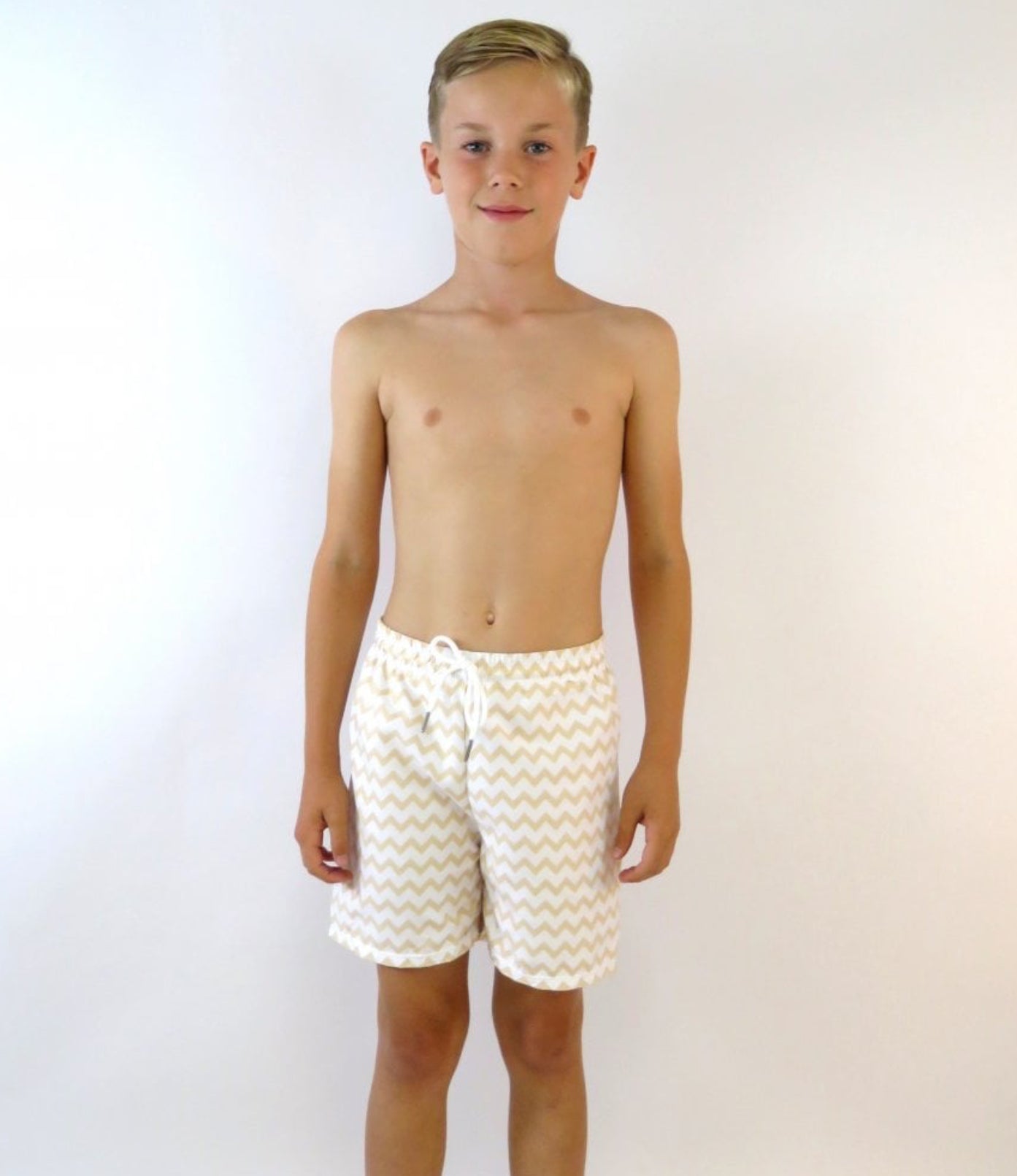 Harris Kids Boys Beige Zig Zag Swim Shorts