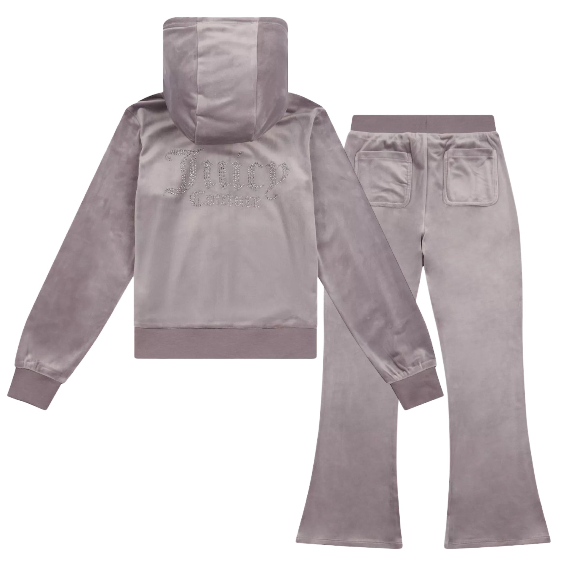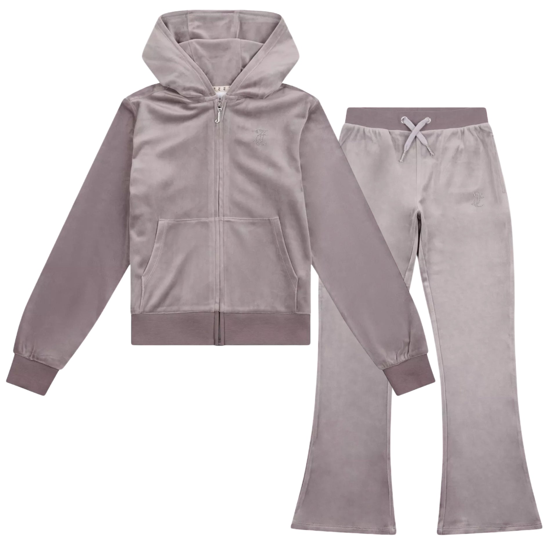 Juicy Couture Girls Grey Mauve Velour Flare Leg Tracksuit