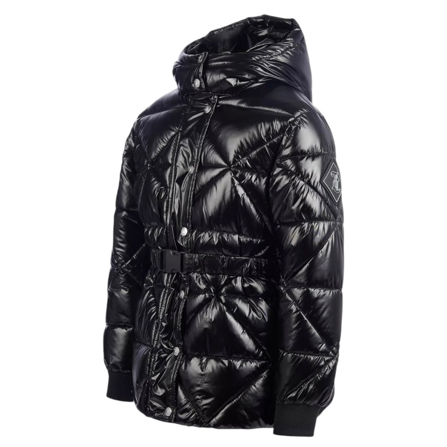 Juicy Couture Girls Black Belted High Shine Coat