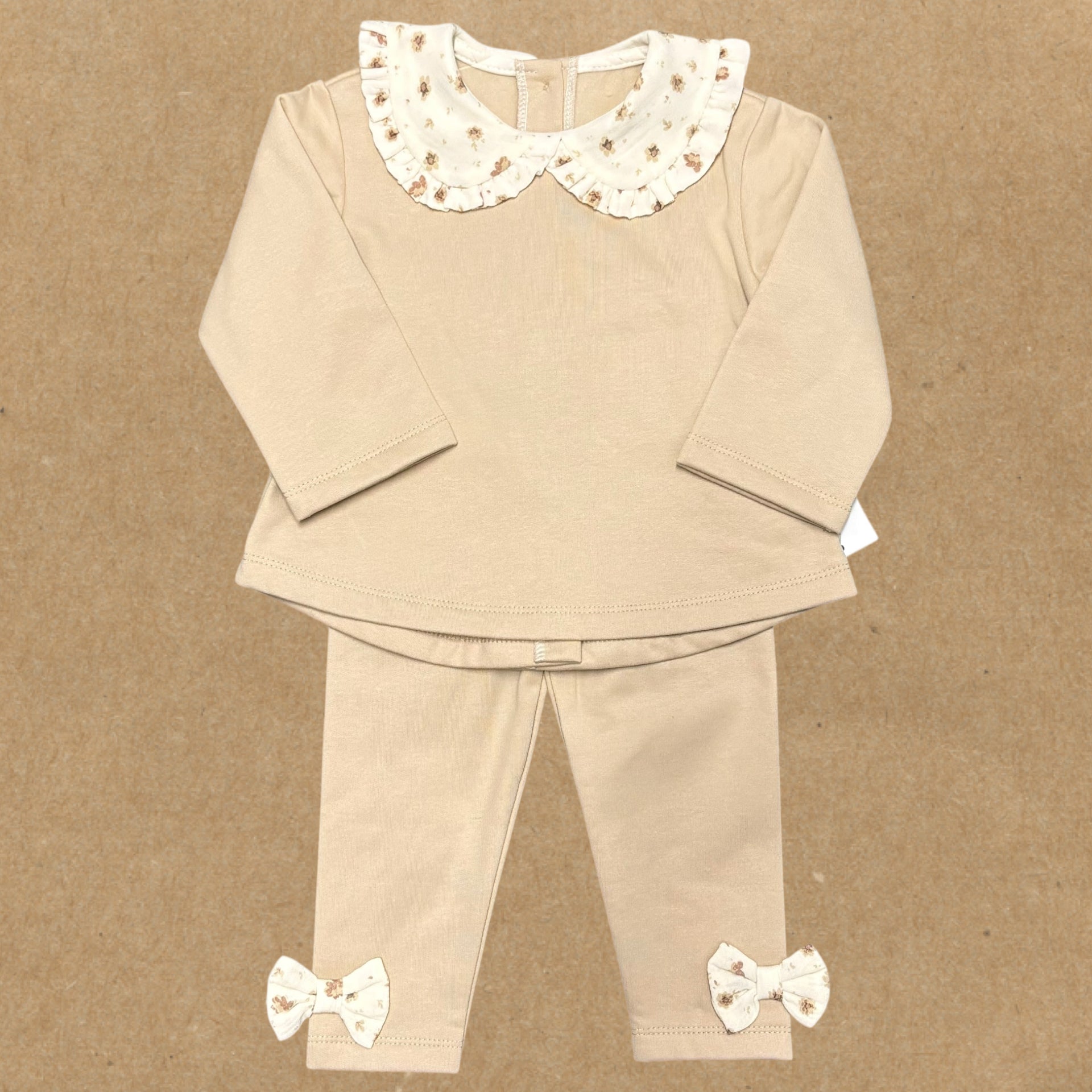Little Star Girls Tan Floral Tracksuit Set