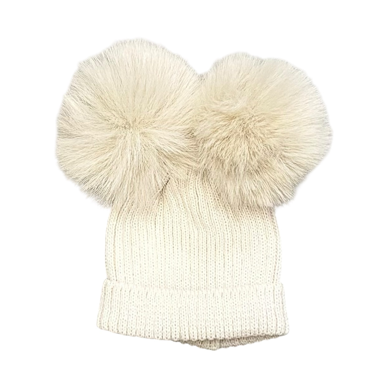 Mac Ilusion Cream Knit Double Fur Pom Hat