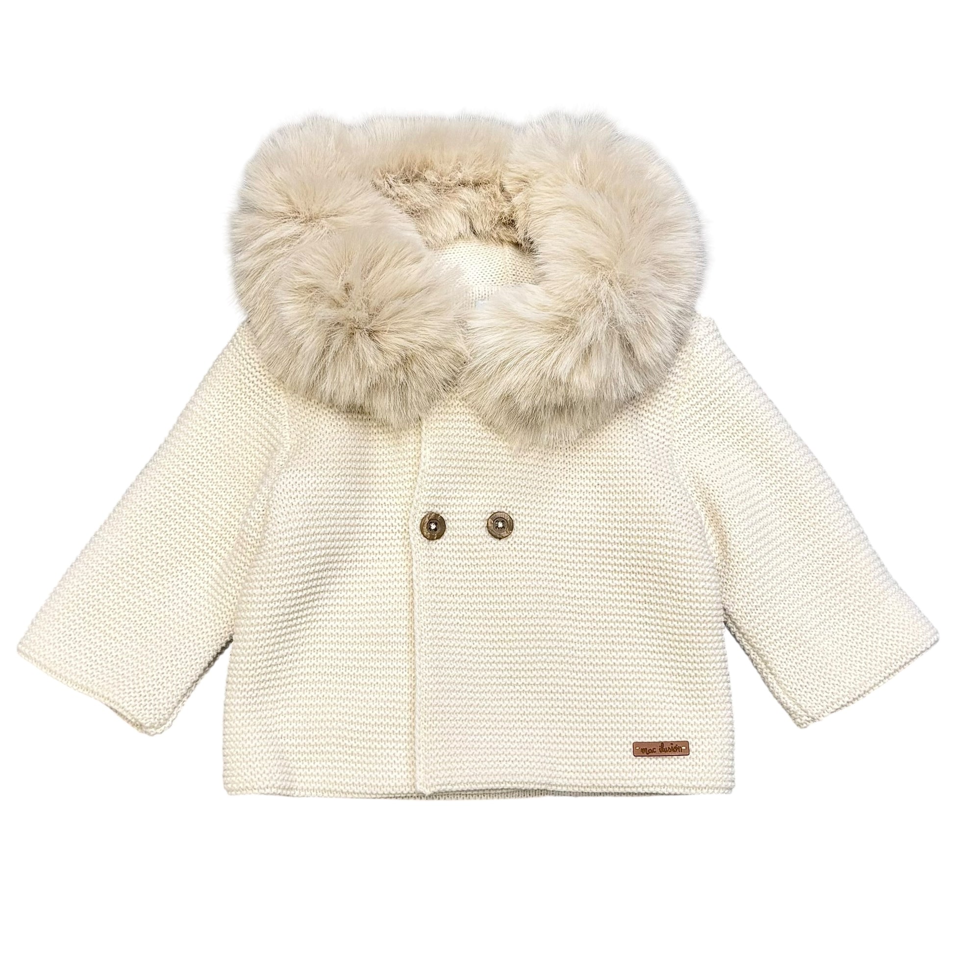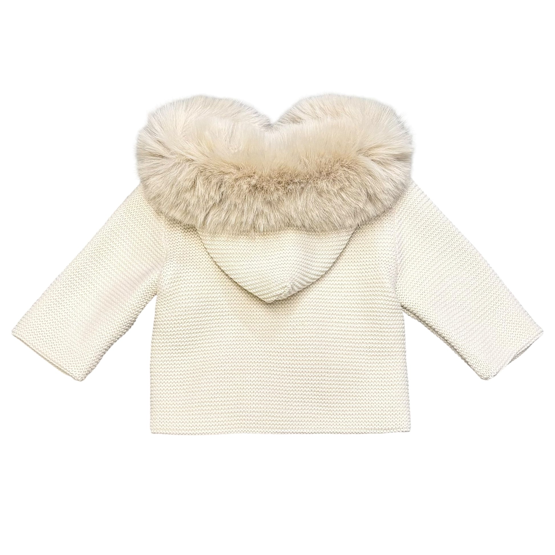 Mac Ilusion Cream Knit Fur Trimmed Cardigan