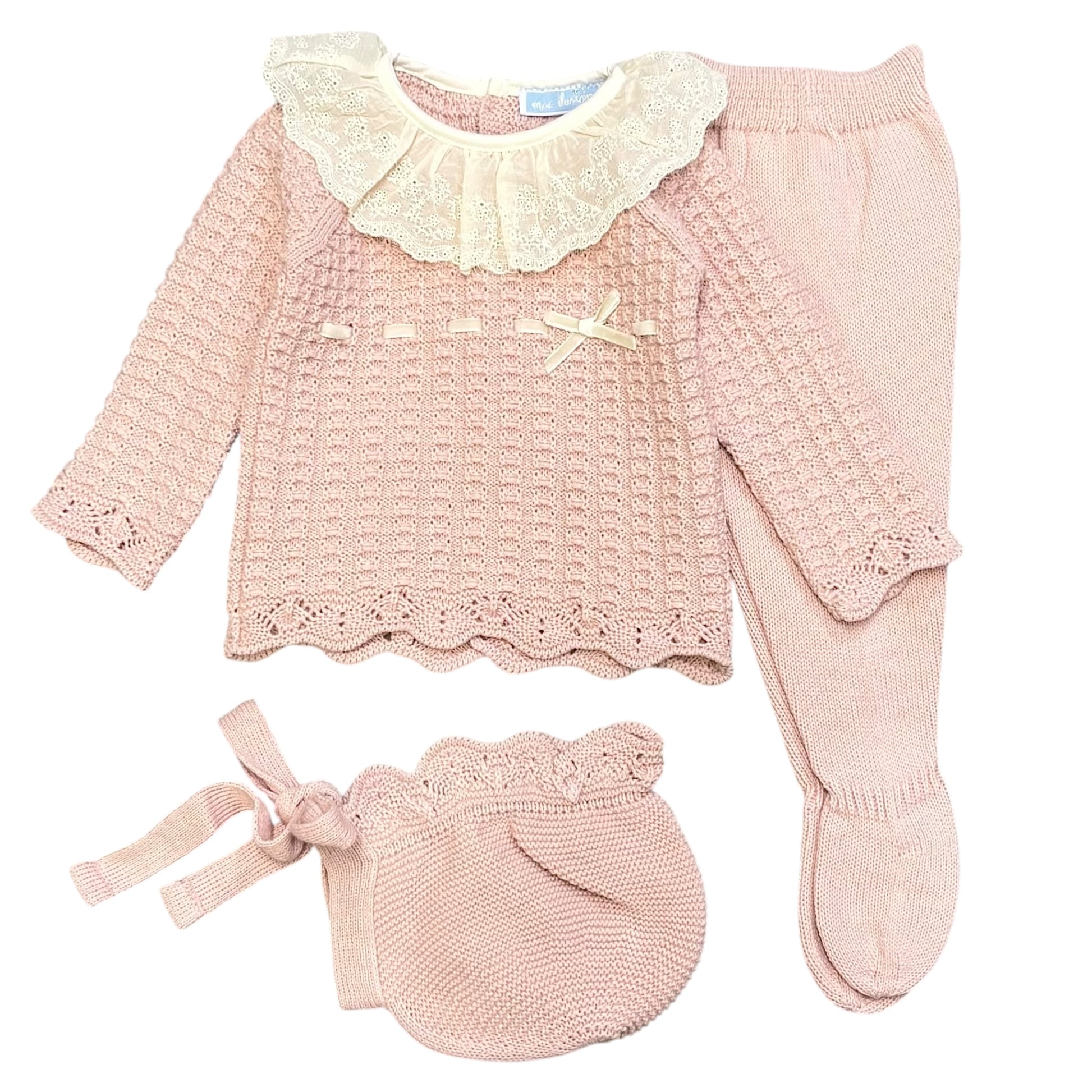 Mac Ilusion Girls Pale Pink Knit Bonnet Pant Set