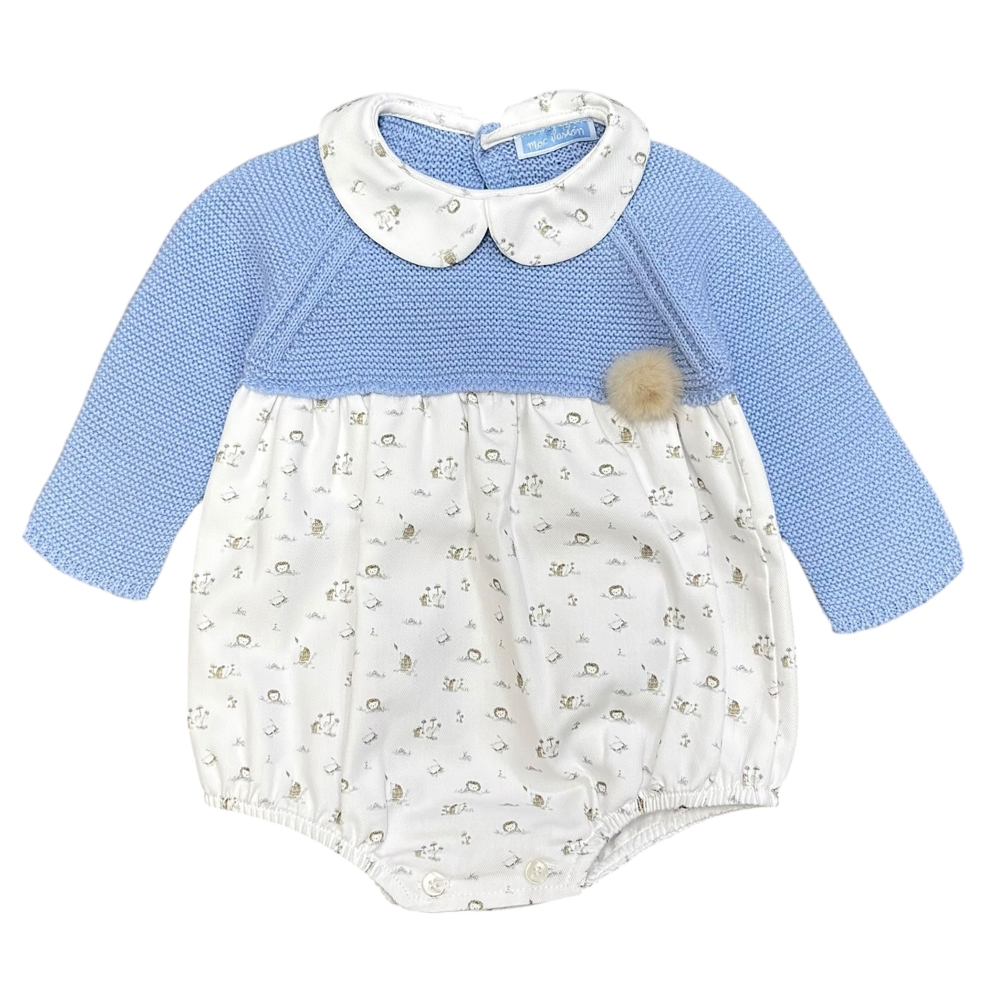 Mac Ilusion Boys Blue Knit Hedgehog Print Romper