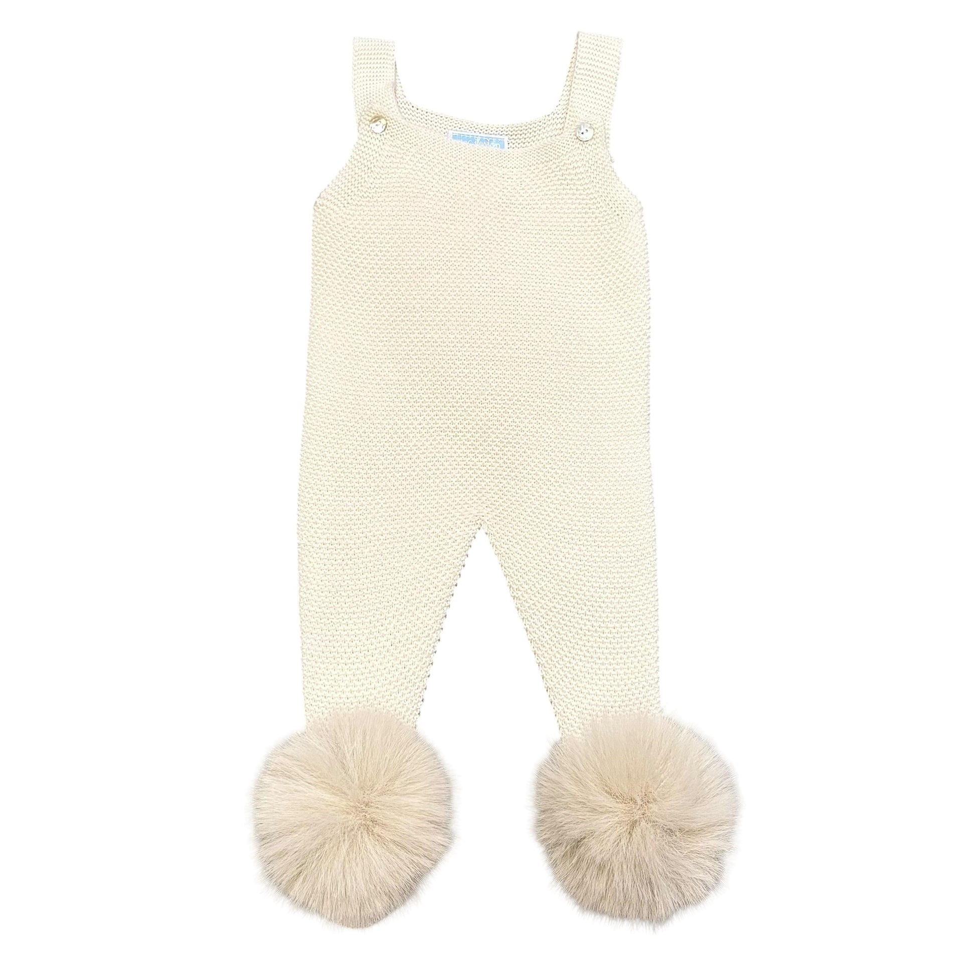 Cream Knit Fur Pom Dungarees