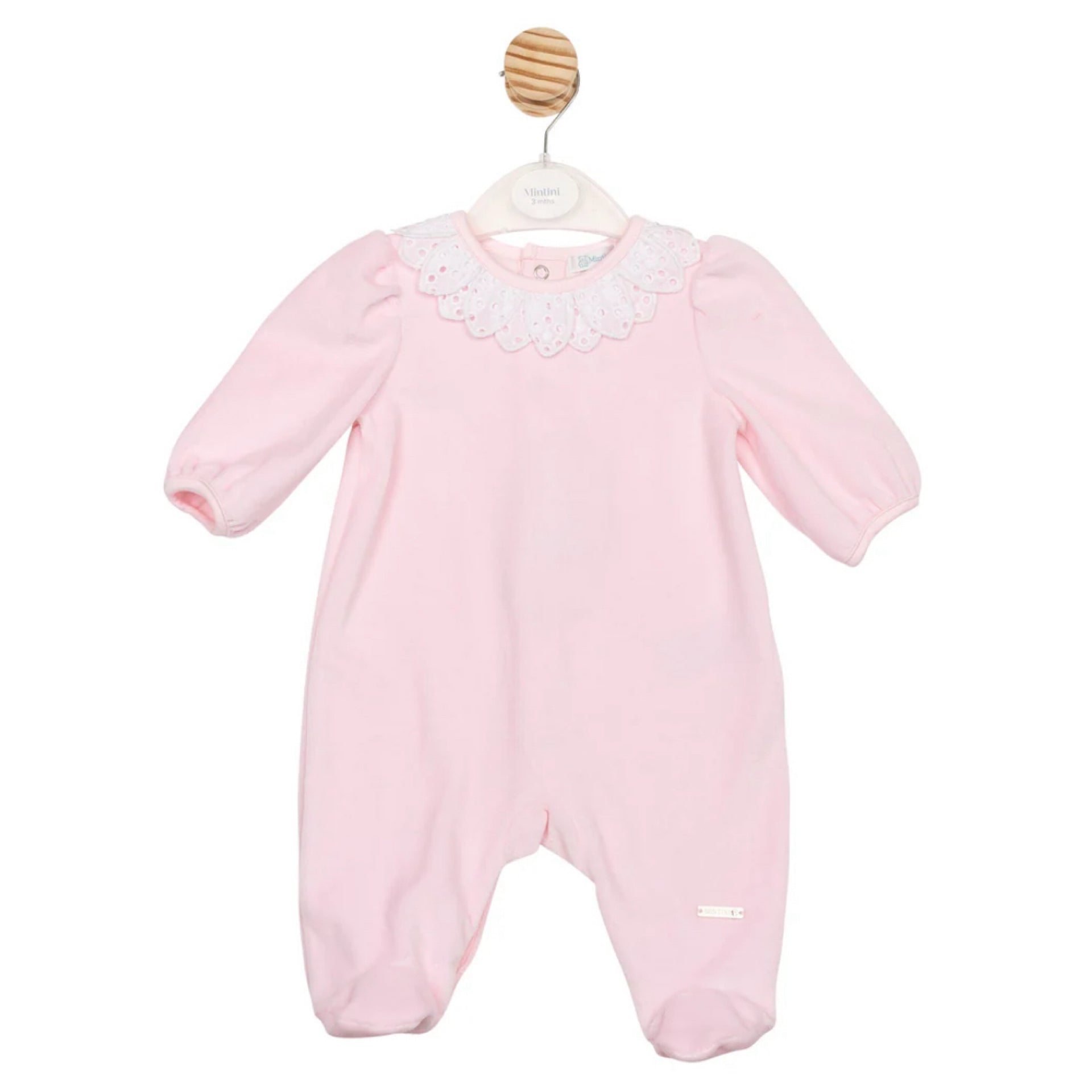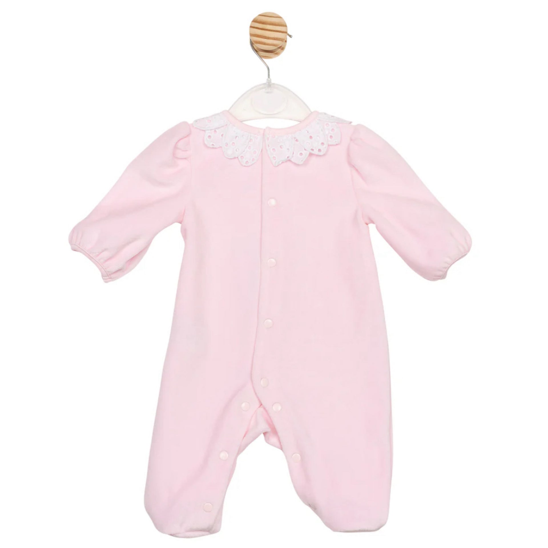 Mintini Girls Pale Pink Velour Petal Babygrow