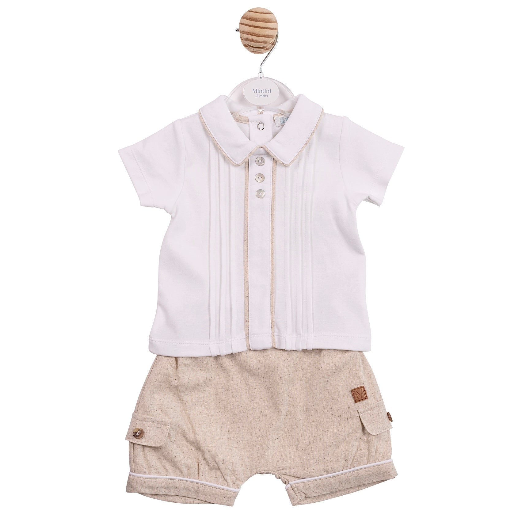 Mintini Boys Beige Linen Polo Jam Pant Set