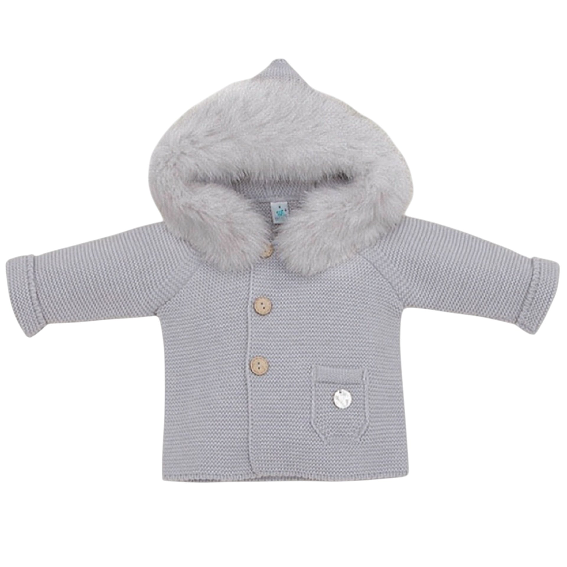 Pangasa Grey Knit Faux Fur Cardigan