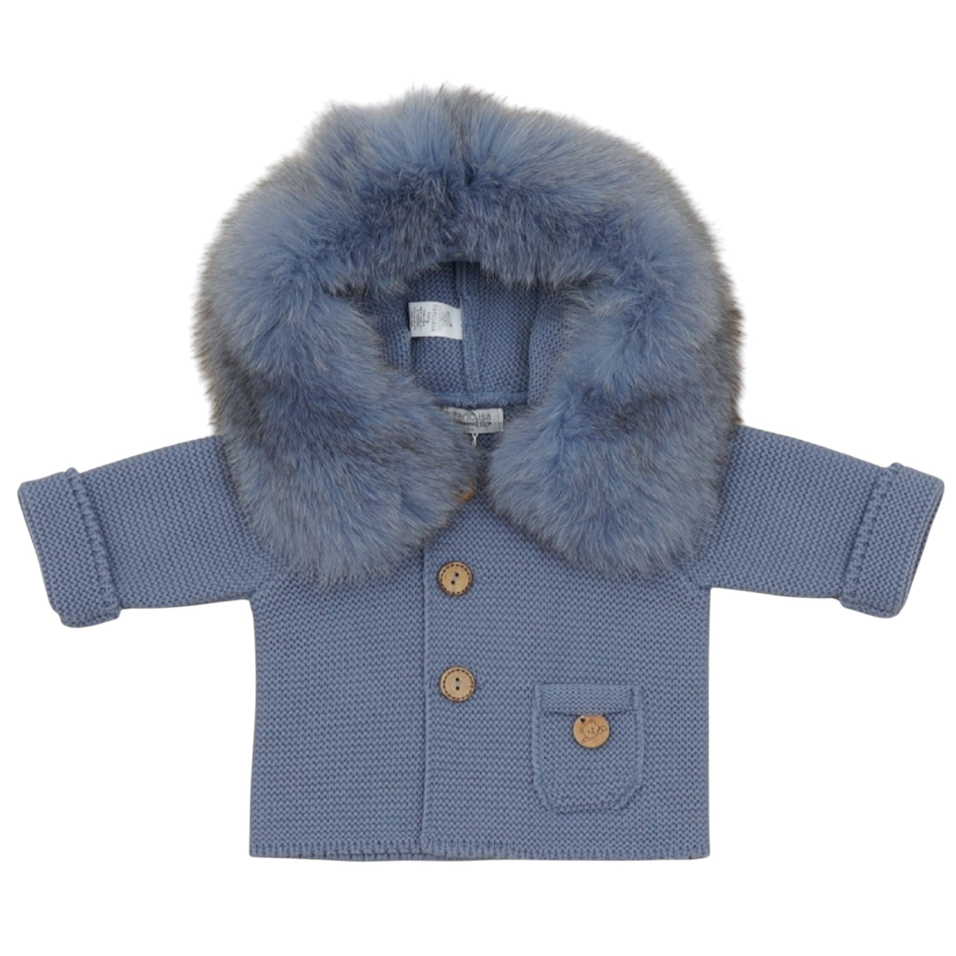 Pangasa Strong Blue Knit Natural Fur Cardigan