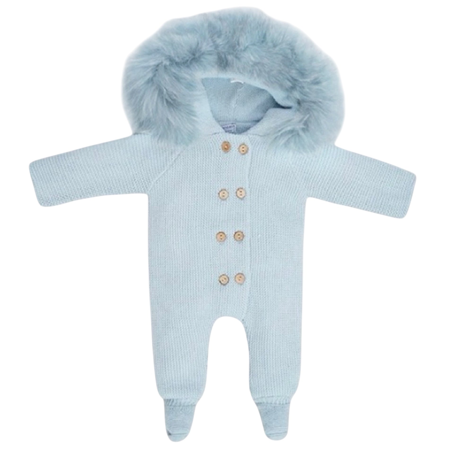 Pangasa Powder Blue Knit Faux Fur Pramsuit
