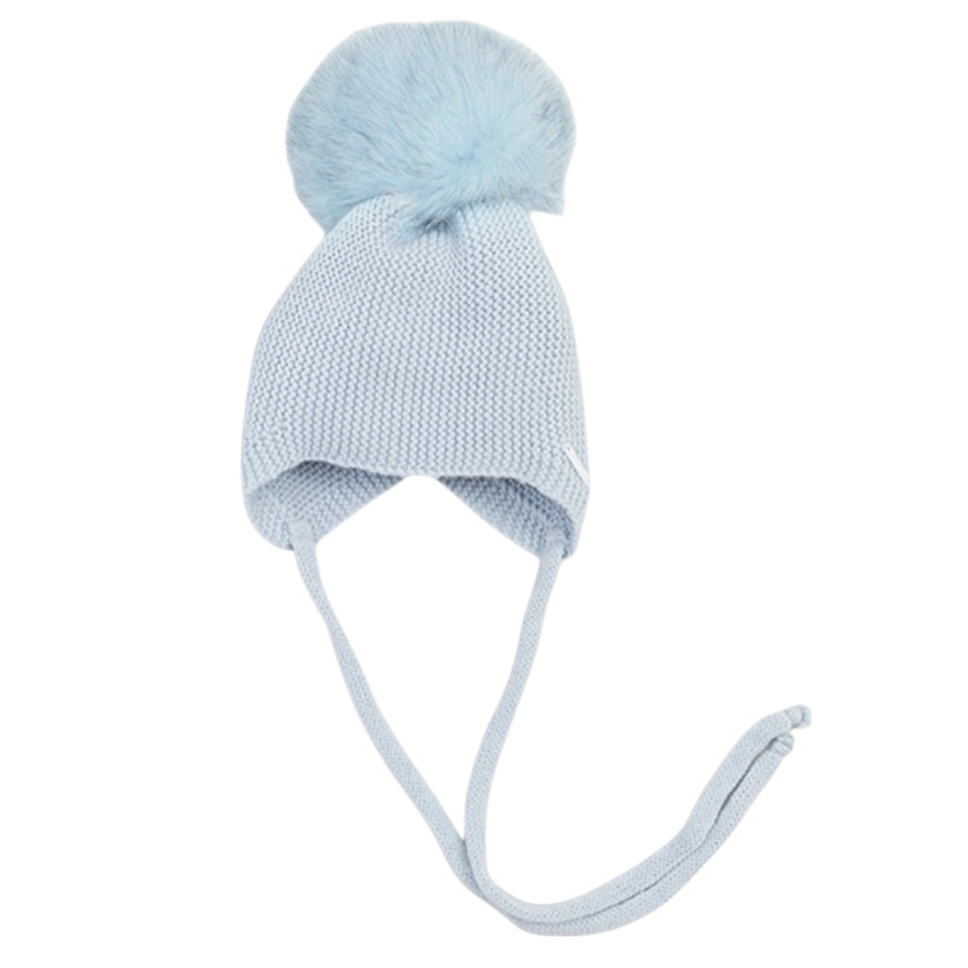 Pangasa Powder Blue Knit Faux Fur Tie Hat
