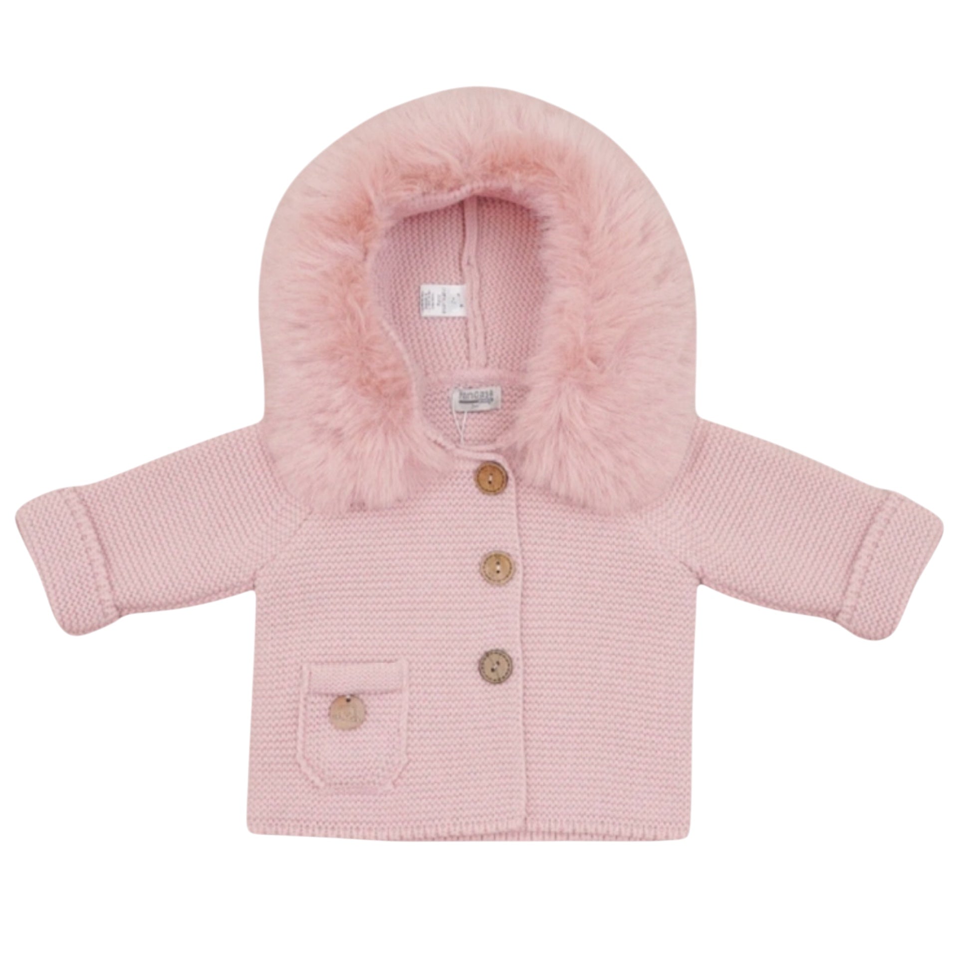 Pangasa Powder Pink Knit Faux Fur Cardigan