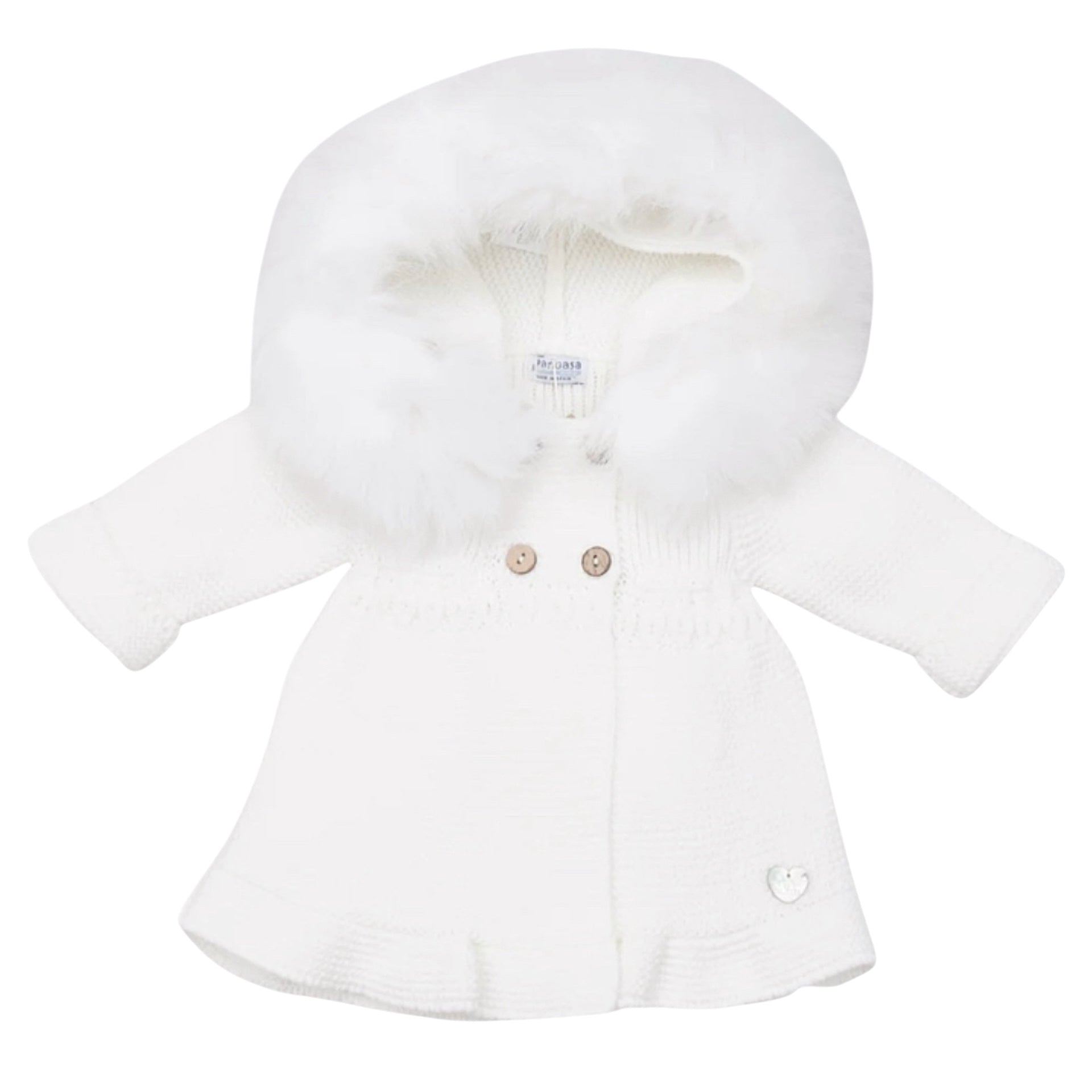 Pangasa Ivory Knit A Line Faux Fur Cardigan