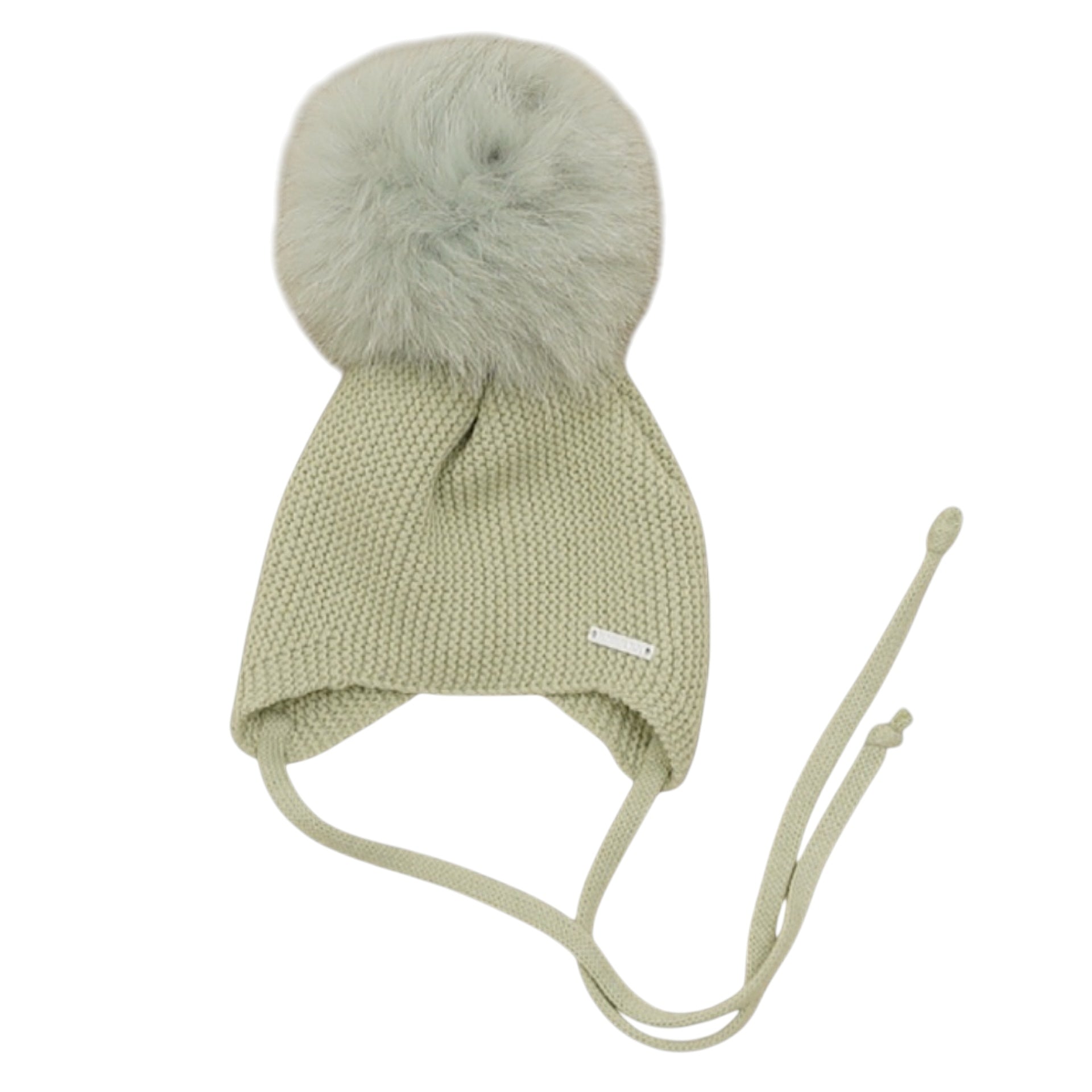 Leaf Green Knit Natural Fur Tie Hat