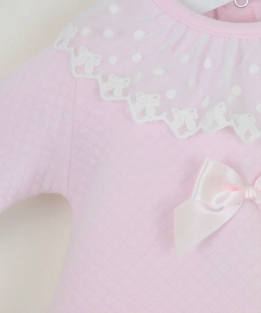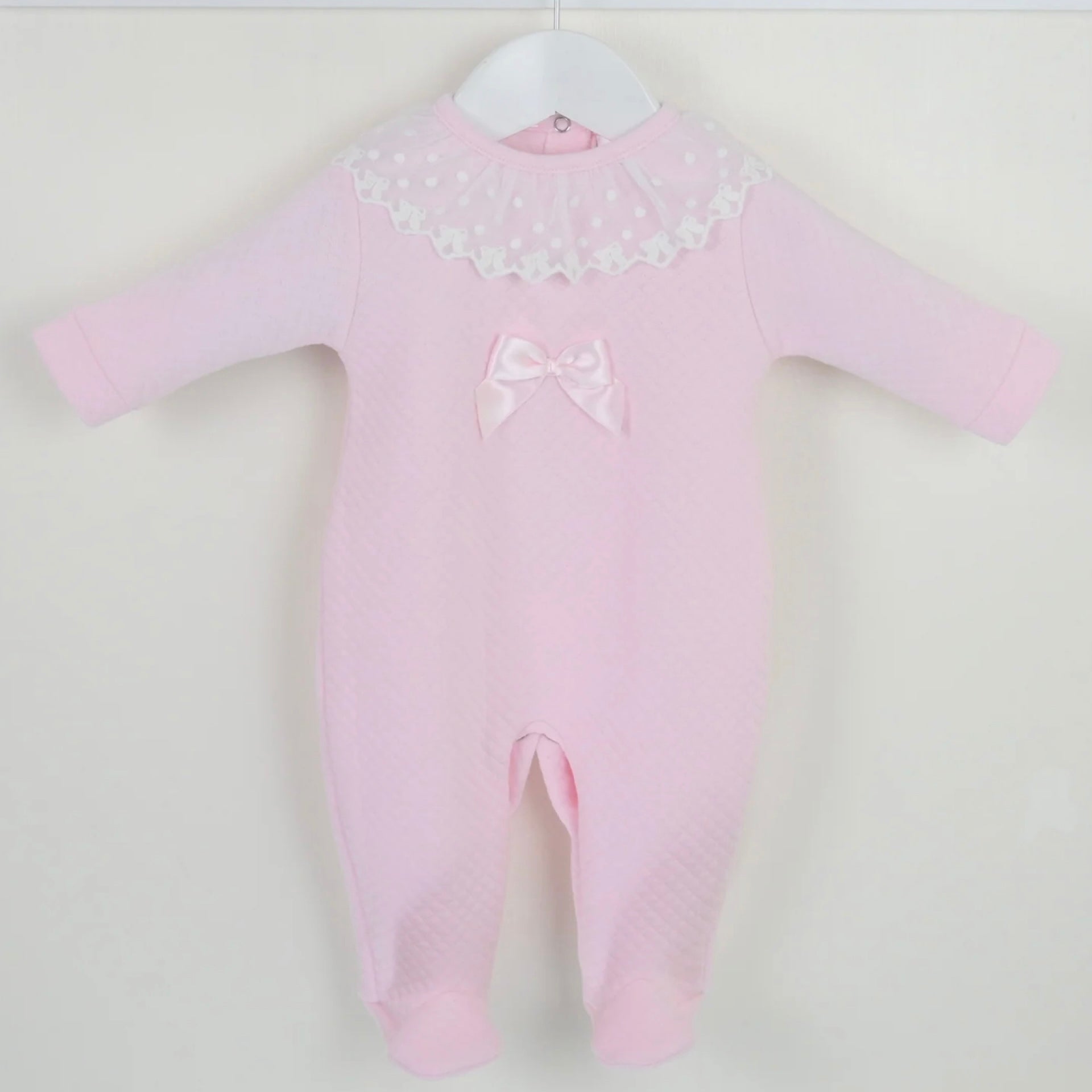 Pex Girls Pale Pink Quilted Collared Babygrow