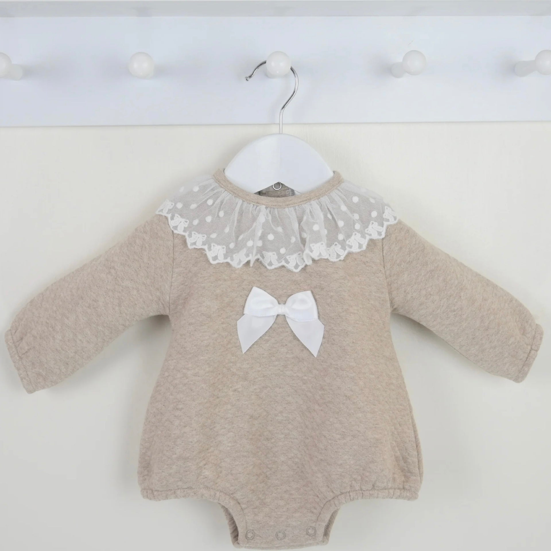 Girls Beige Quilted Collared Romper