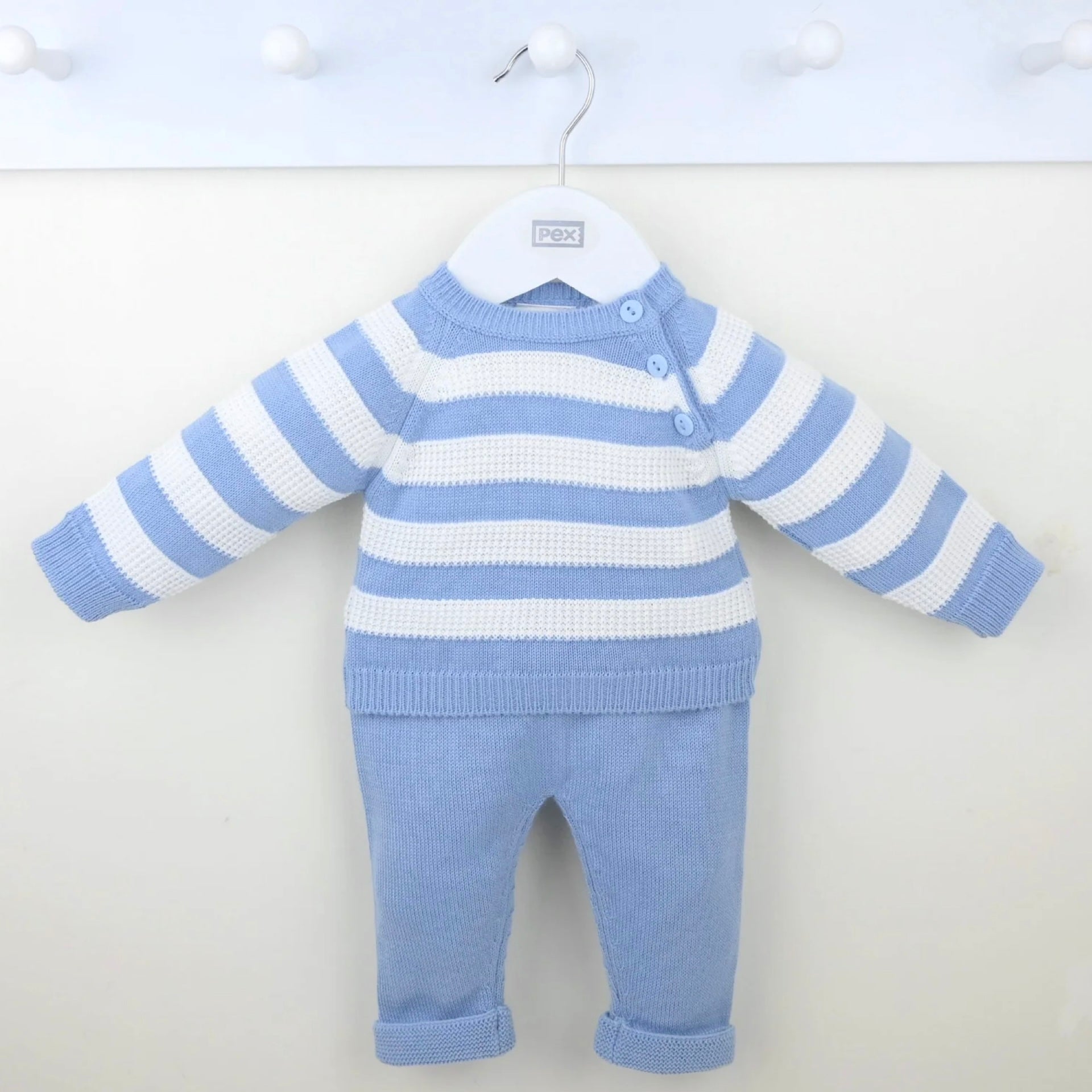 Pex Boys Dark Blue Knit Stripe Pant Set