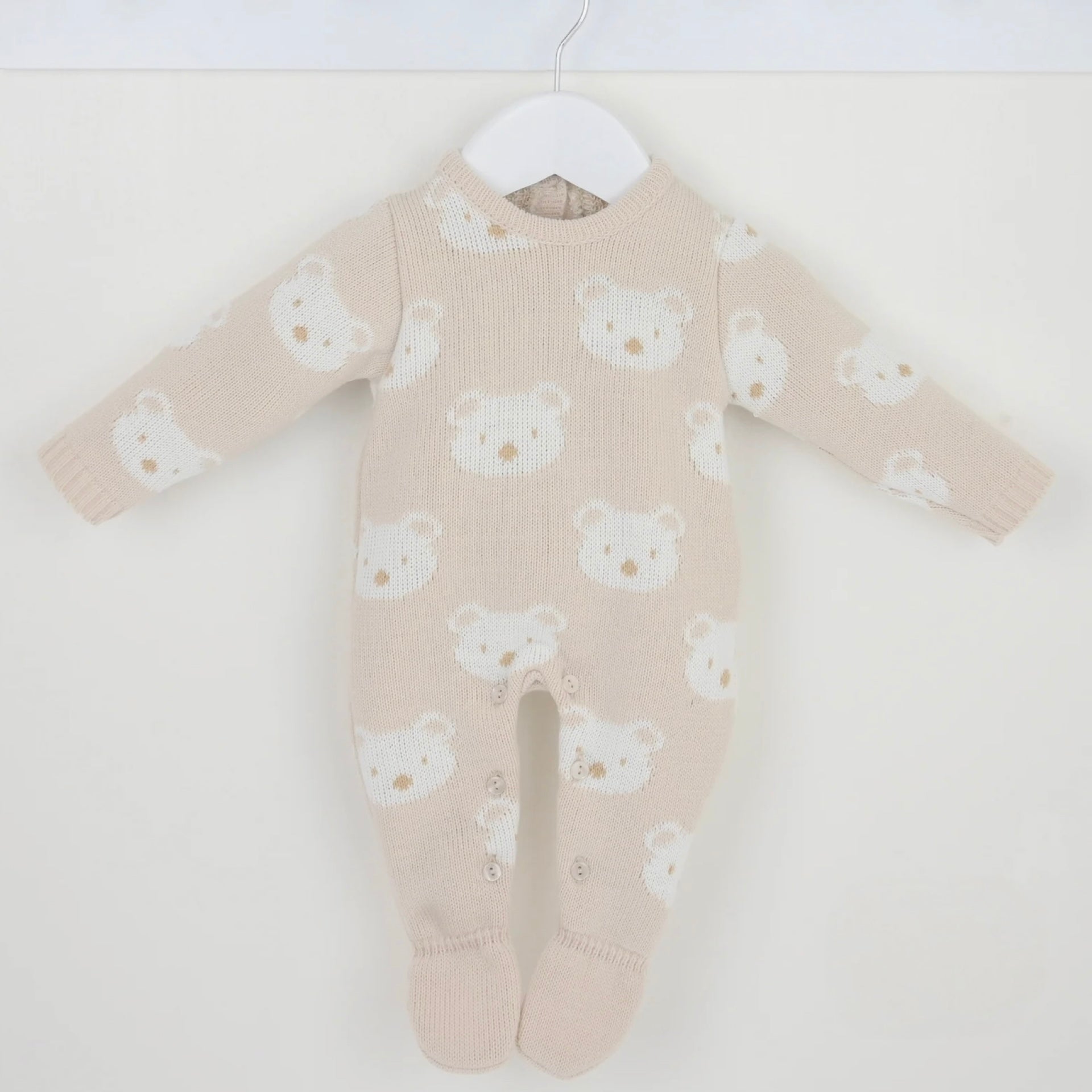 Boys Beige Knit Bear Babygrow