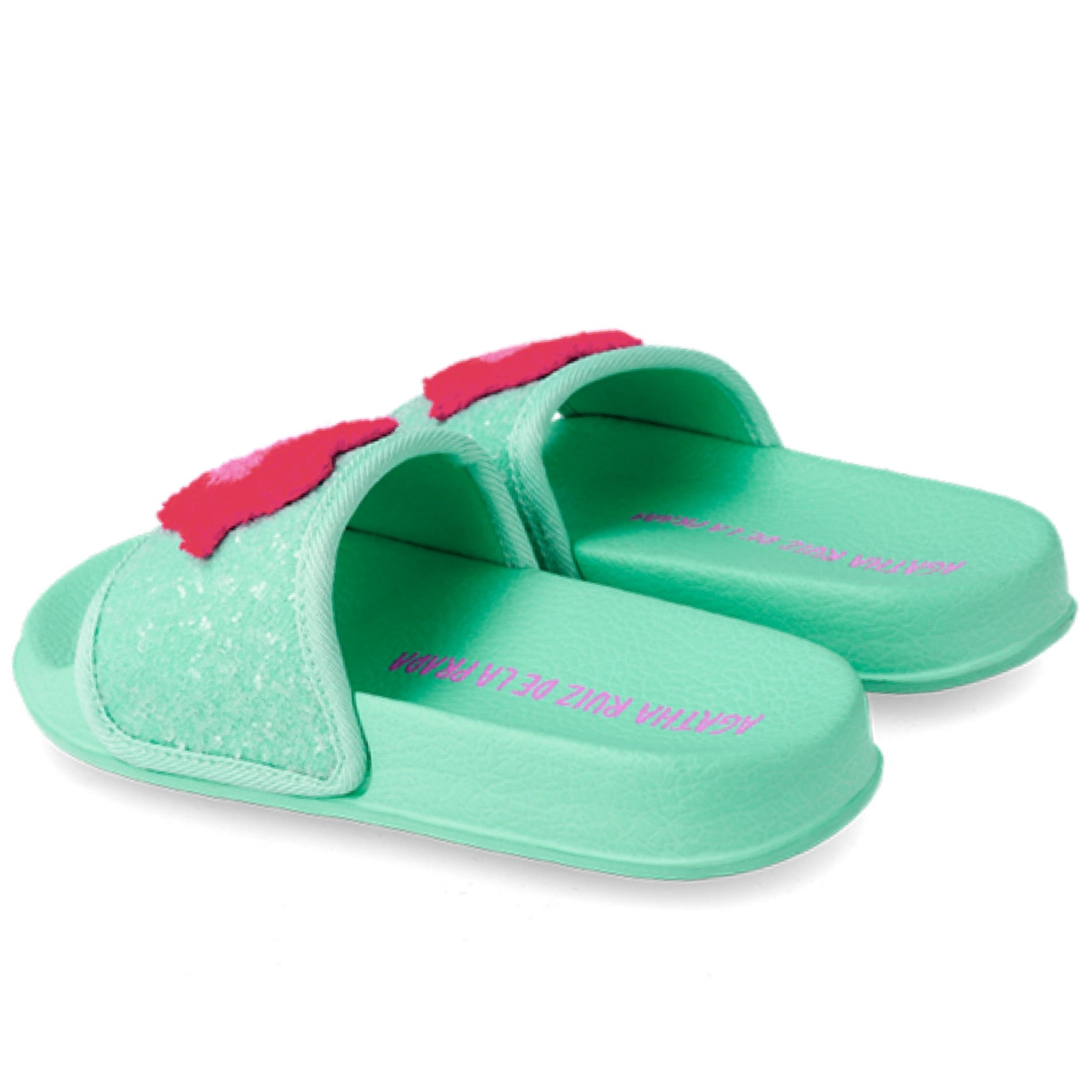 Agatha Ruiz Shoes Turquoise Kiss Glitter Sliders