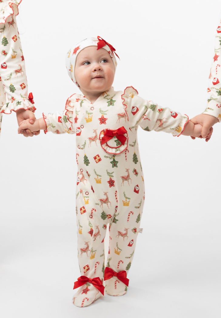 Caramelo Girls Christmas Pyjama Babygrow with Hat