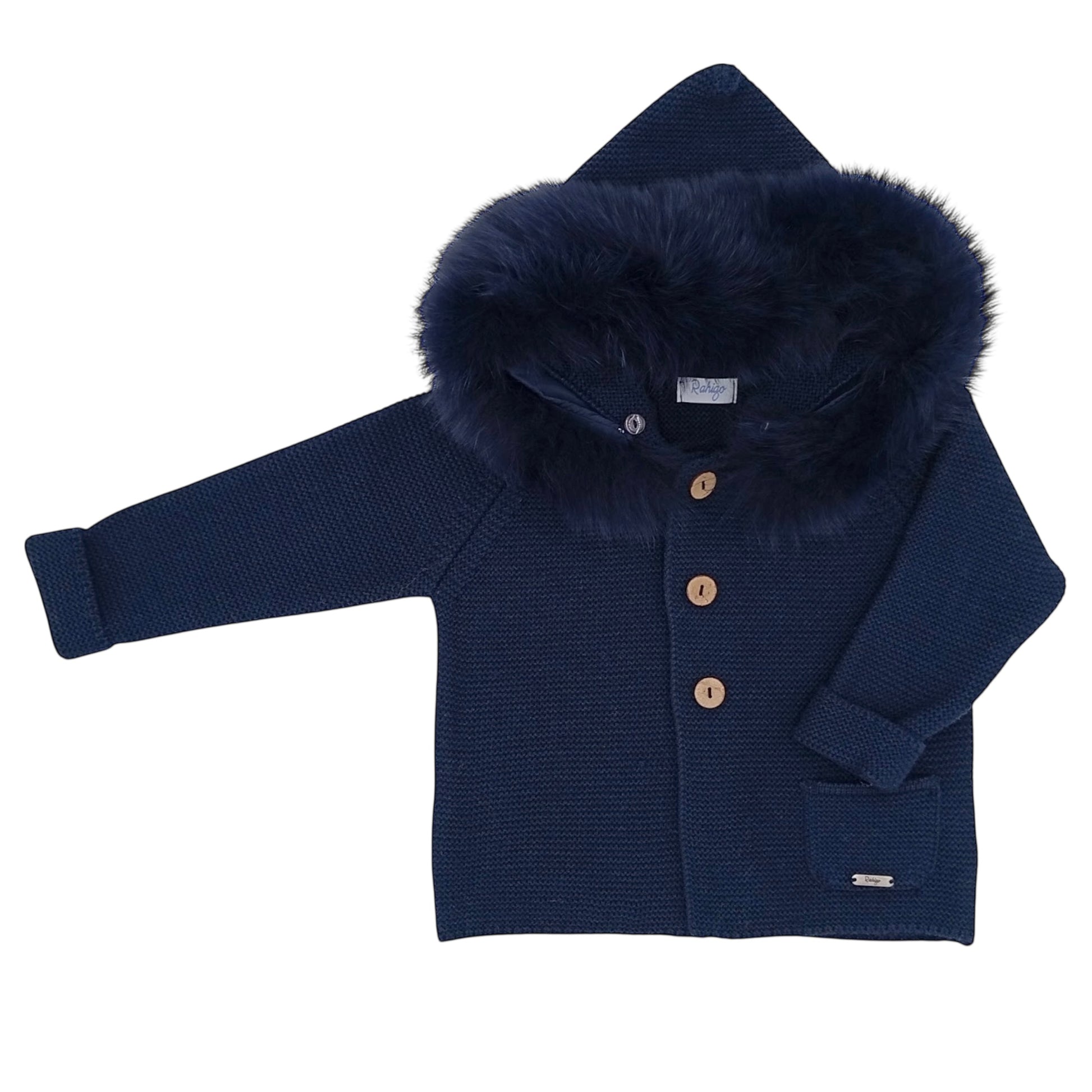Rahigo Boys Navy Knit Fur Trim Cardigan