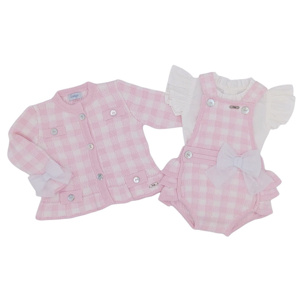 Rahigo Girls Pink Gingham Knit Romper Set