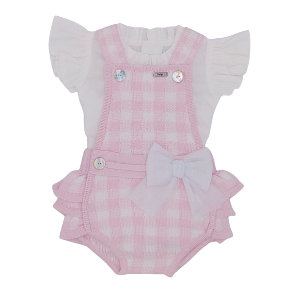 Girls Pink Gingham Knit Romper Set