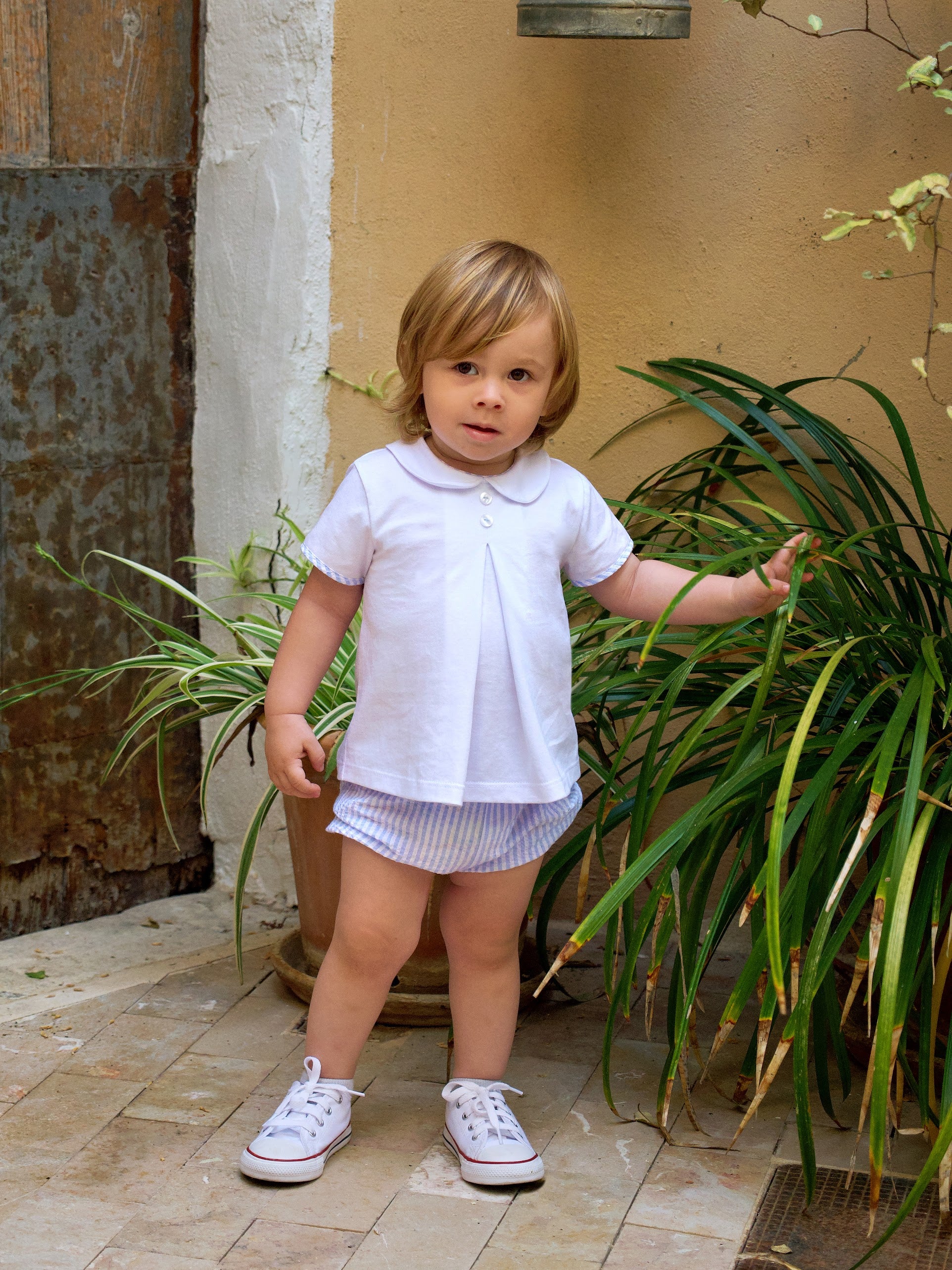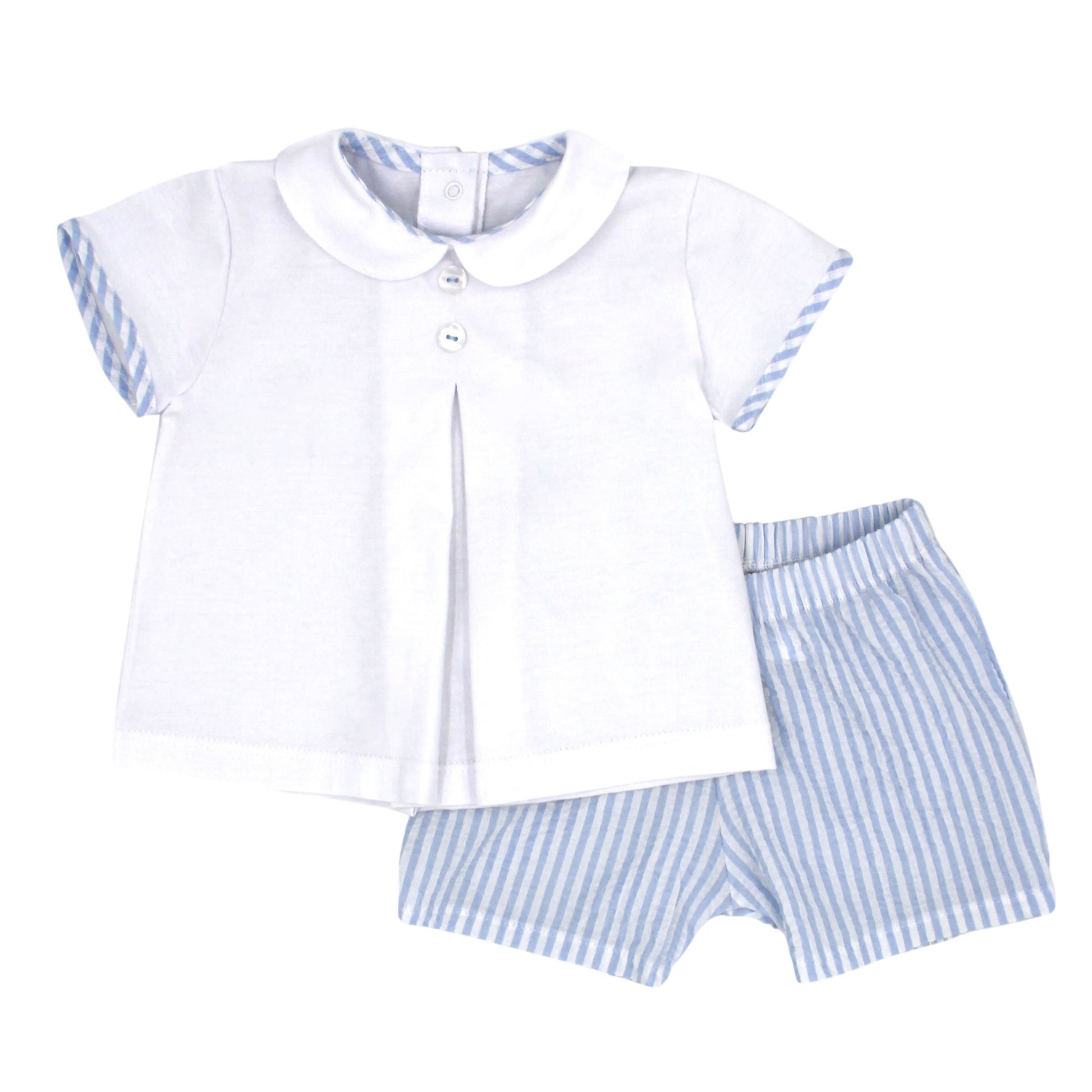 Boys Pale Blue Stripe Soft Cotton Jam Pant Set