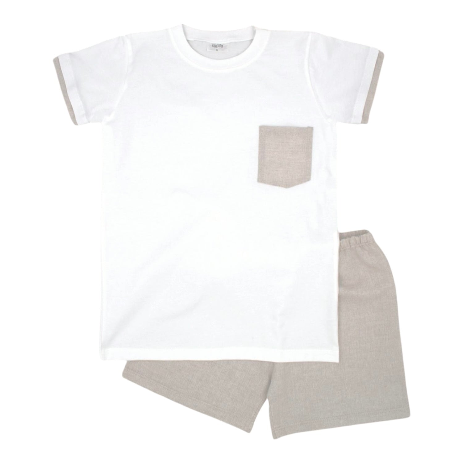 Rapife Boys Beige Linen Soft Cotton Short Set