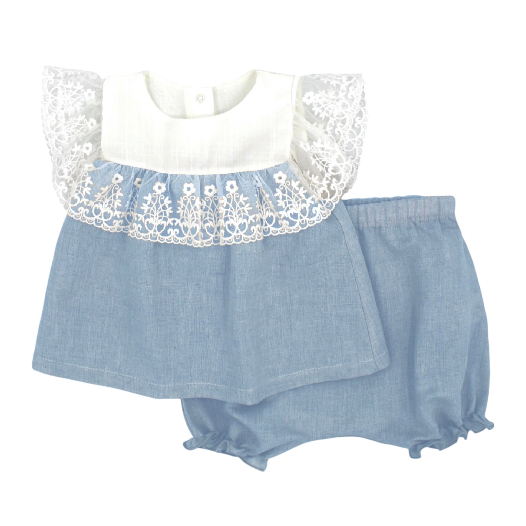 Rapife Girls Blue Linen Lace Jam Pant Set