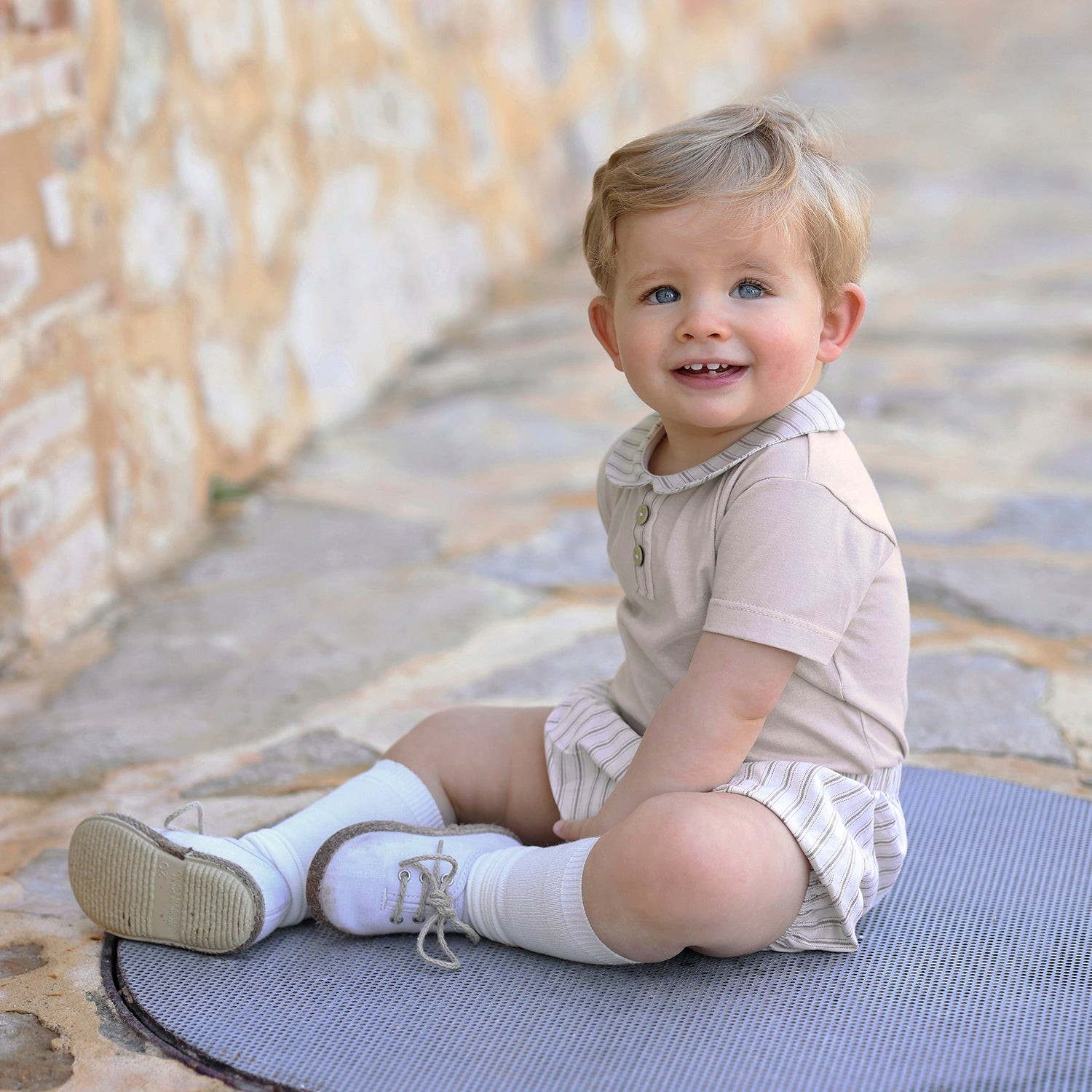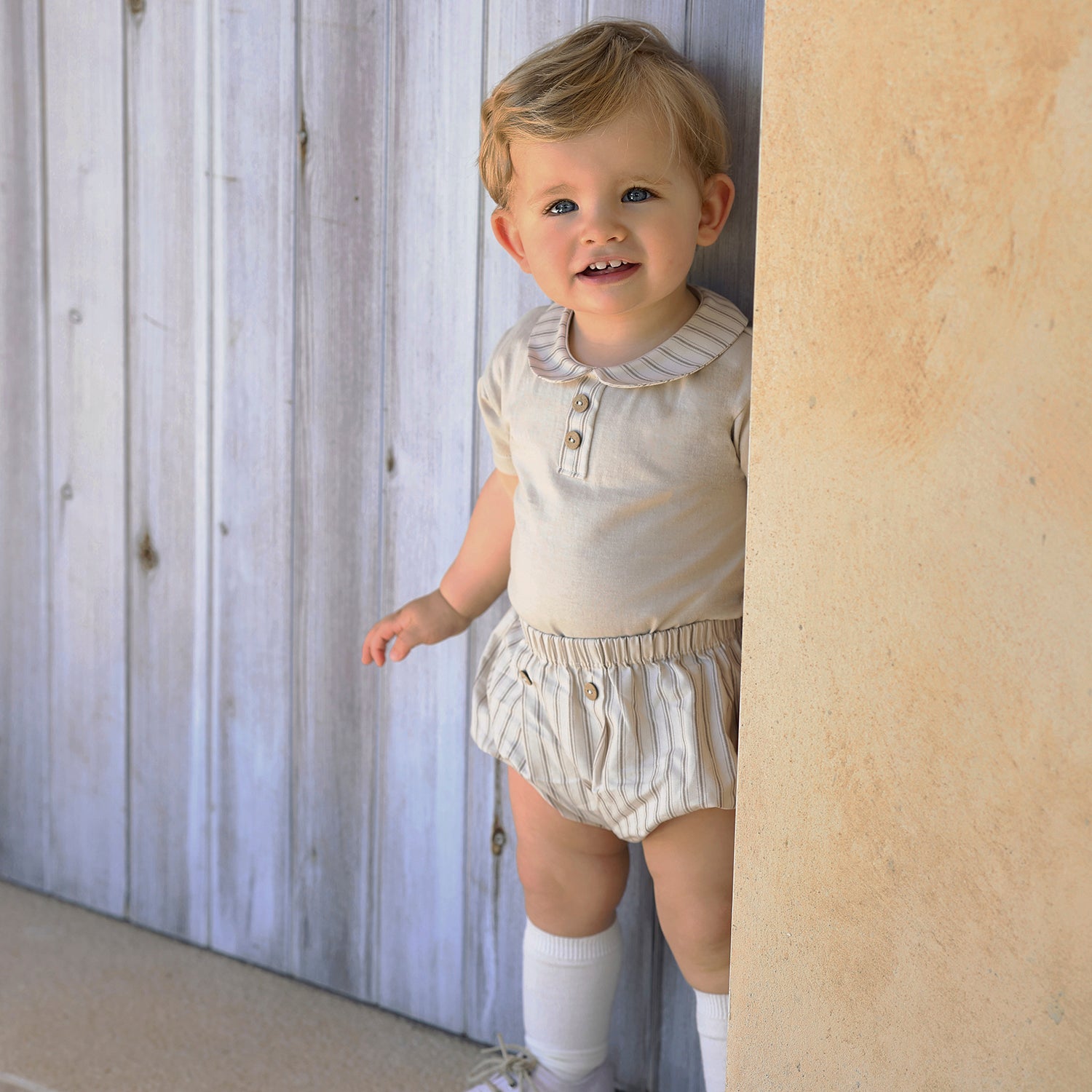 Boys Beige Stripe Soft Cotton Jam Pant Set