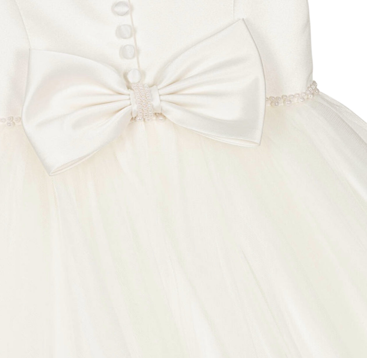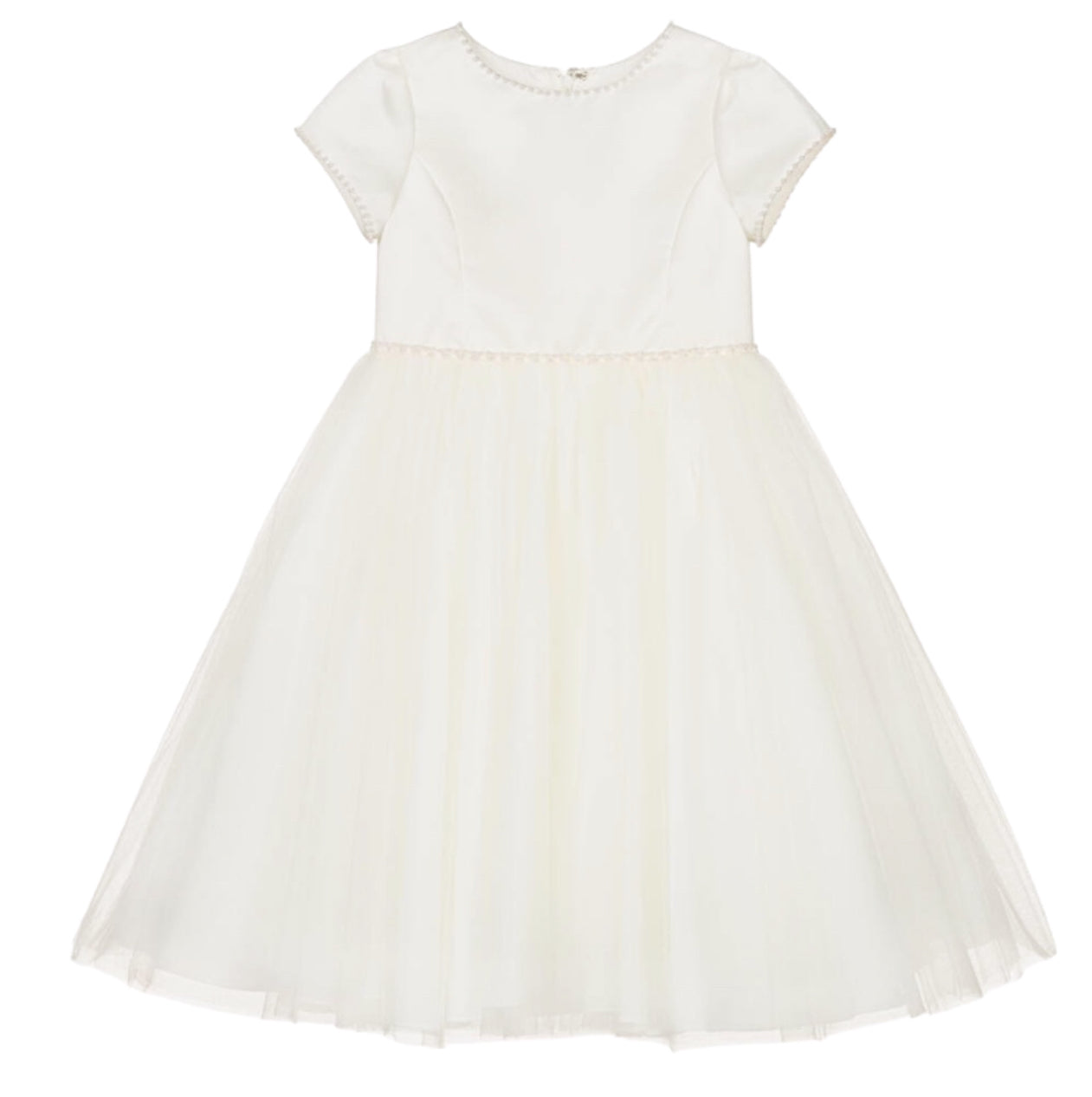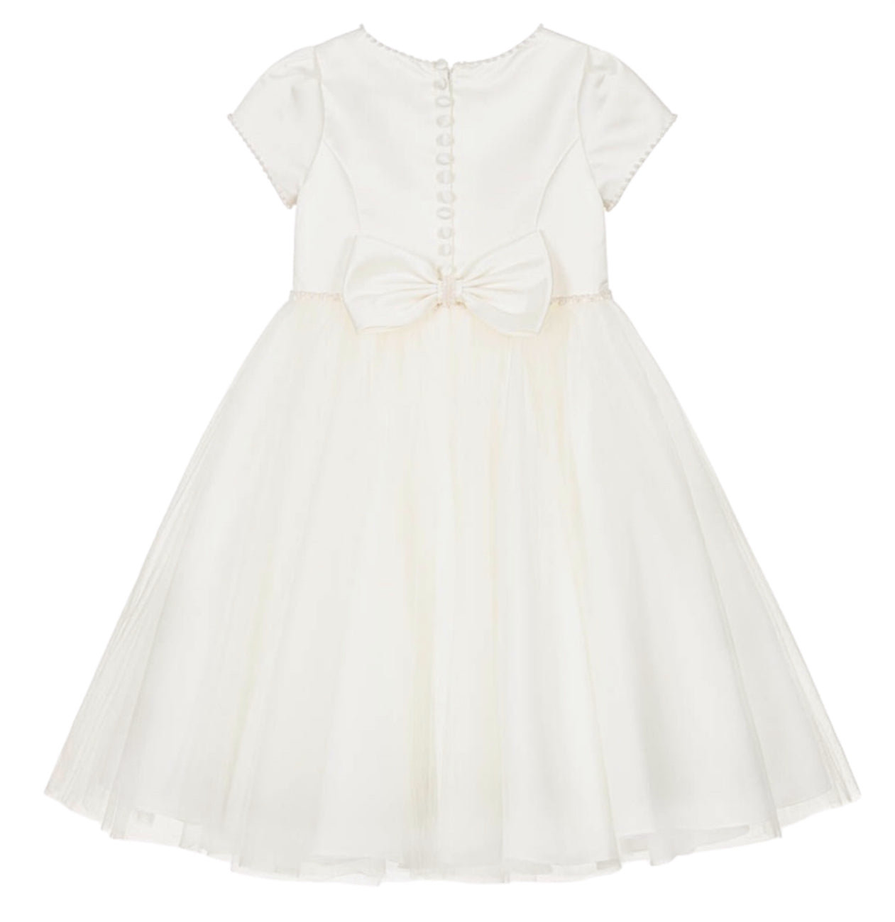 Girls Ivory Pearl Cap Sleeve Ballerina Length Dress