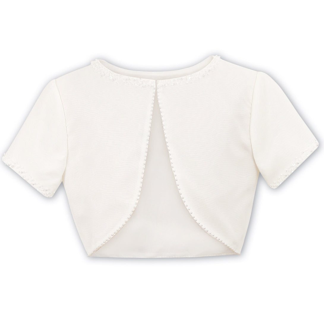Sarah Louise Girls Short Sleeve Ivory Satin Bolero